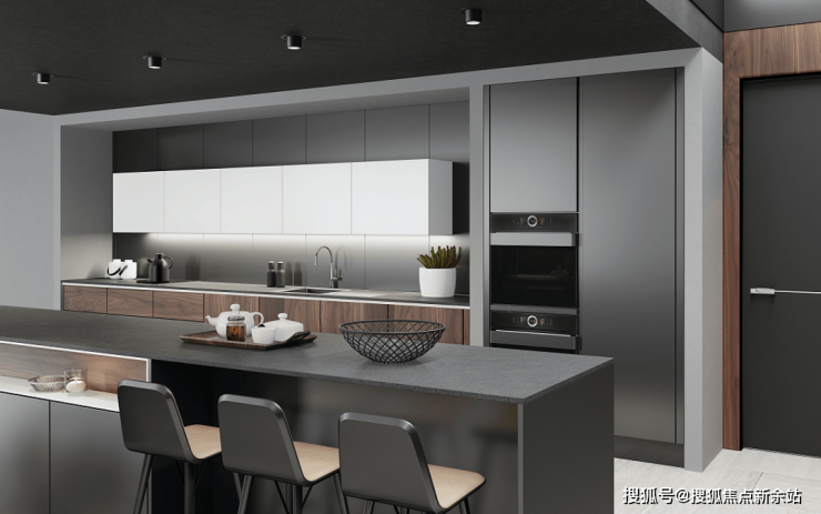 首先餐厨系统,中厨、西厨、超大中岛和餐厅组成了4重交流空间;餐厅容纳8人大圆桌,是家庭交流的中心,也是待客的礼仪与体面。