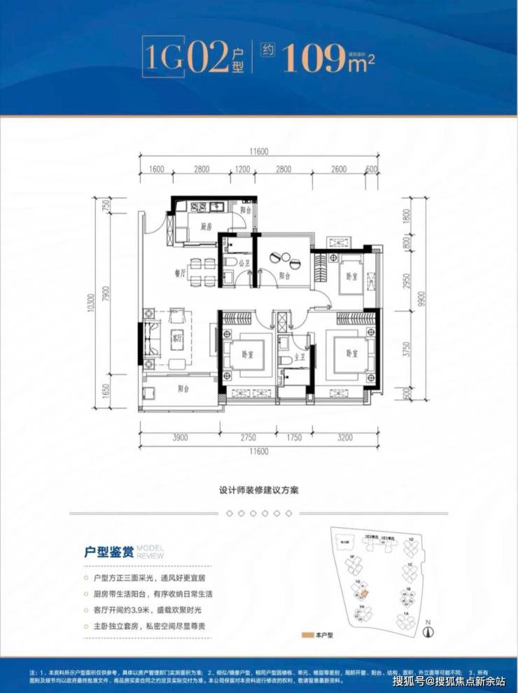 1B-06 户型:约109㎡ 阔绰四房两厅两卫: