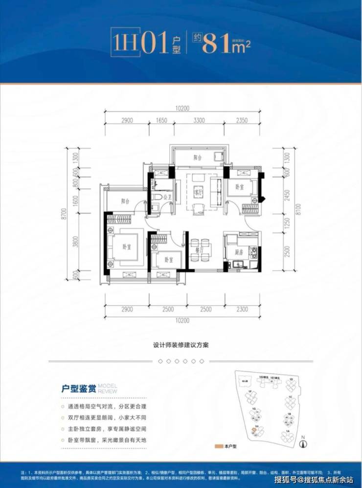 1H-02/03户型:约81㎡ 三房两厅两卫:
