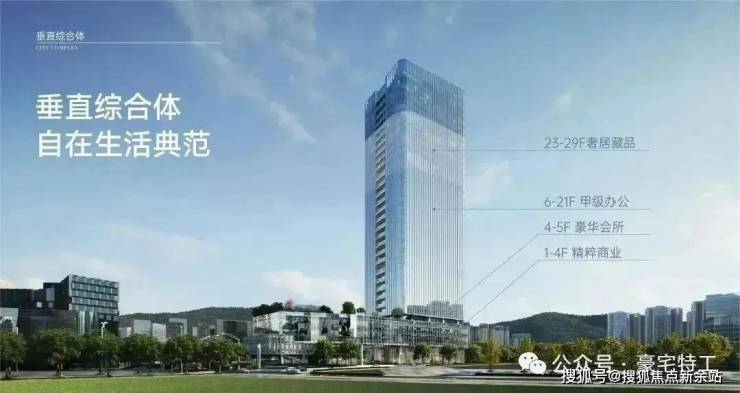 集合云端居住、奢雅会所、精粹商业、甲级办公为一体的垂直综合体,生活&休闲、社交&事业,悦然相逢,自在切换。