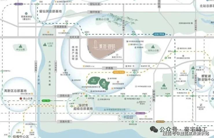 快捷交通路网,北环大道/南坪快速/侨香路/京港澳高速,20-30分钟到福田CBD、深圳北站、皇岗/福田/深圳湾三大口岸、宝安机场等,城芯而居,超享生活。