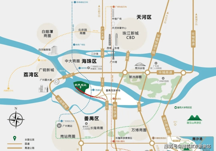· 交通:立体路网,通达全城 项目虽享岛居静谧,但绝非孤岛。新光快速、华南快速、环城高速等多条主干道环伺,瞬间接驳天河、海珠等核心区。自驾出行极为便利,满足高端客群对高效通勤的需求。