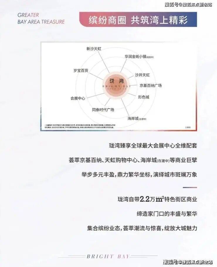 约1公里范围内,拥有华南区最大的天虹商场——约10万㎡新沙天虹、约18万㎡京基百纳广场;未来约5分钟还可享受约18万㎡海岸城商业(引进宝安首家山姆会员店)配套,以及约32万㎡会展圈国际体验互动式商业