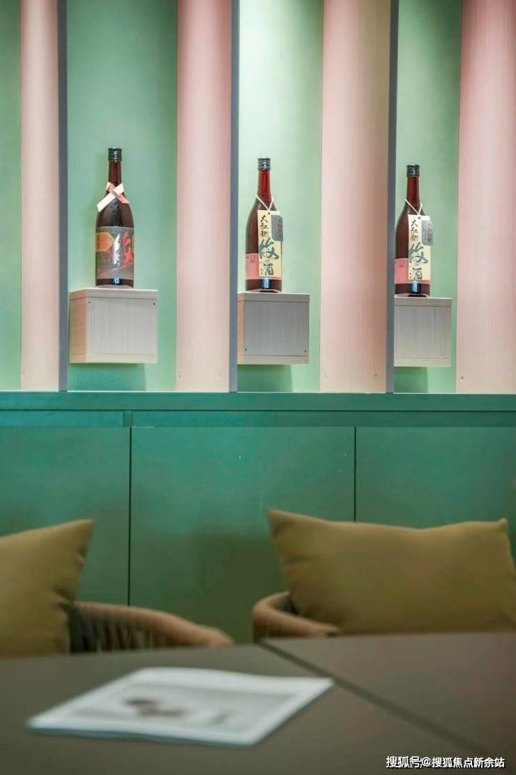 富有变化的绿色色调与酒品质感描绘出品尝中的不同层次。配合吊顶上落下的米色帷幕材质,让人在品酒的同时,视觉感受更轻柔恬适。