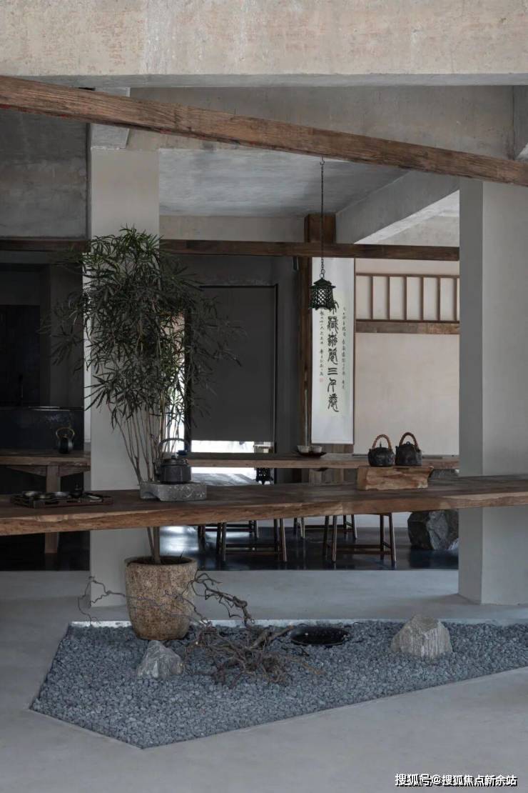The "yibentang" space is based on the concept of " wood flowing in the cup", and the traces of the long flow of time are introduced into every corner of the space through design; dead wood and mountain rocks, deep forests and tea utensils, cooking smoke and breeze, their existence makes the people inside it more It is easy to lose sight of the passage of time. Here, the quiet sound of tea can flow into the sleeves through various utensils and windows, infiltrating nature and wildness into conversations.