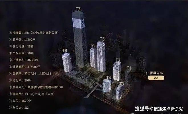 南区分为:T5、T6、T8公寓,T7为环球商务中心。
