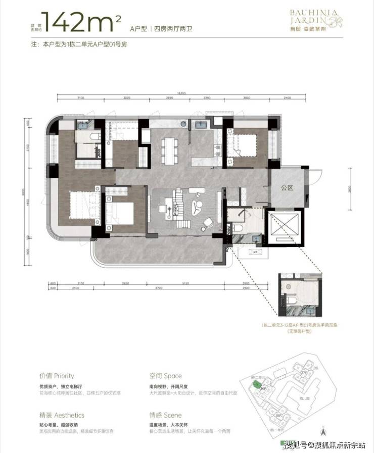 户型:新规设计、高使用率,规划主力为3-4房产品。