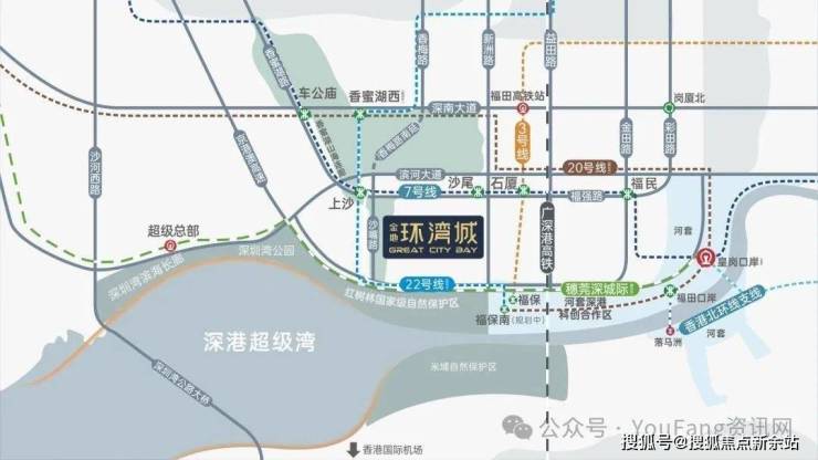 双地铁线:7号线双地铁口(上沙站、沙尾站);22号线双地铁上沙站 (规划中,双线交汇),1站直达香蜜湖新金融中心与国家级河套深港创新合作区
