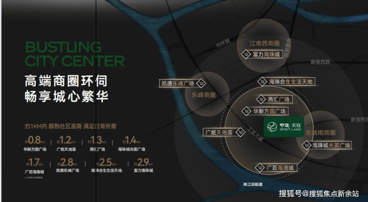 中建天钰周边商业资源丰富,距离东晓南、江南西商圈较近,同时乐峰广场也在附近。周边工业大道沿线拥有多个农贸市场、商业广场,生活消费极为便利。整体而言,海珠西板块的商业氛围成熟,生活配套较为完善。