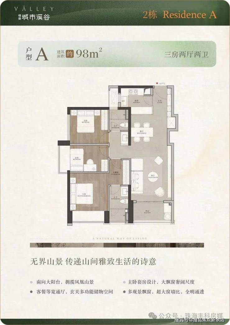 城市溪谷三期拥有三面凤凰山山景,一面高层瞰海的山、海、谷景观优势,南北大中轴观景面排布,在珠海市面在售新盘中绝无仅有。