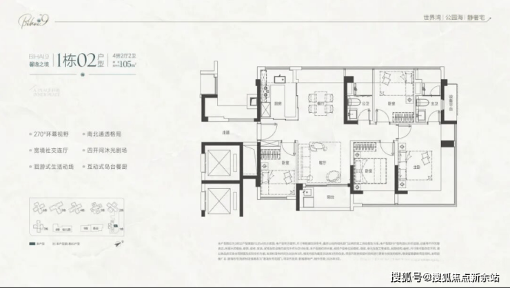 项目主推建面约105-188㎡的纯四房产品,定位非常纯粹,全部是改善型四房。首推约196套,主力为105-122㎡户型。