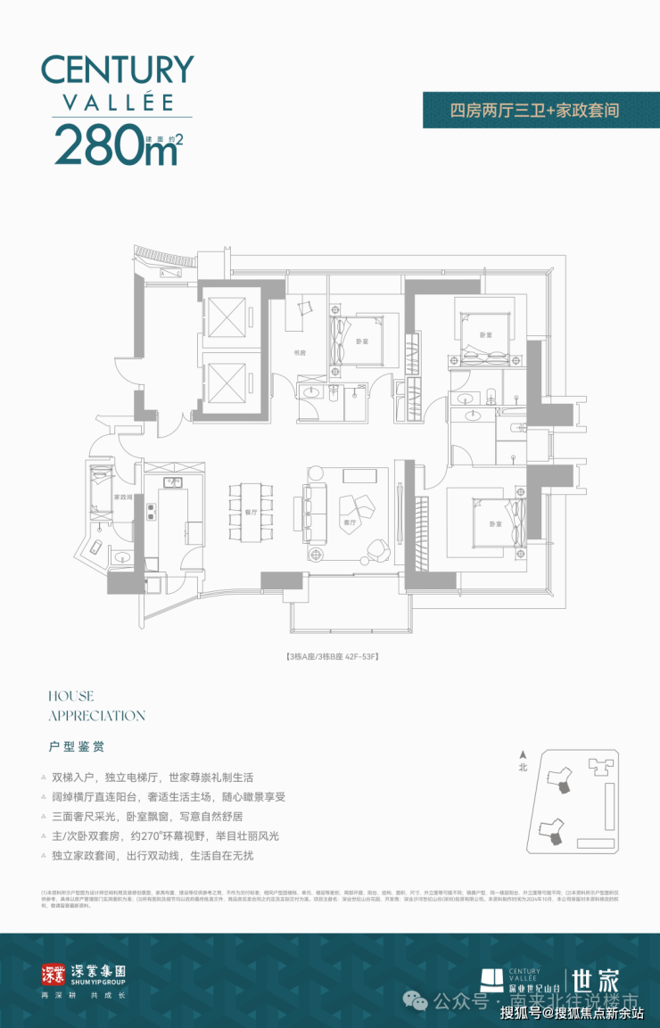 建面约280㎡ 四房两厅三卫+家政套间