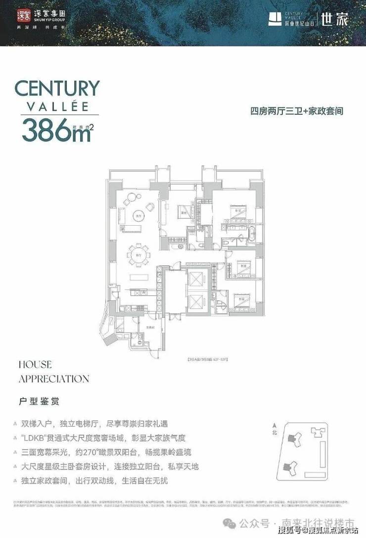 建面约386㎡ 四房两厅三卫+家政套间
