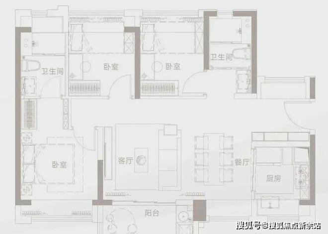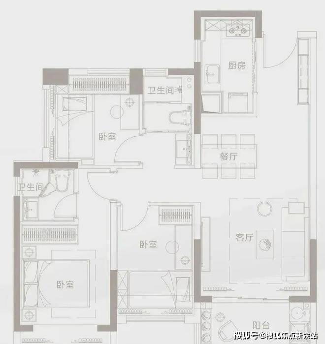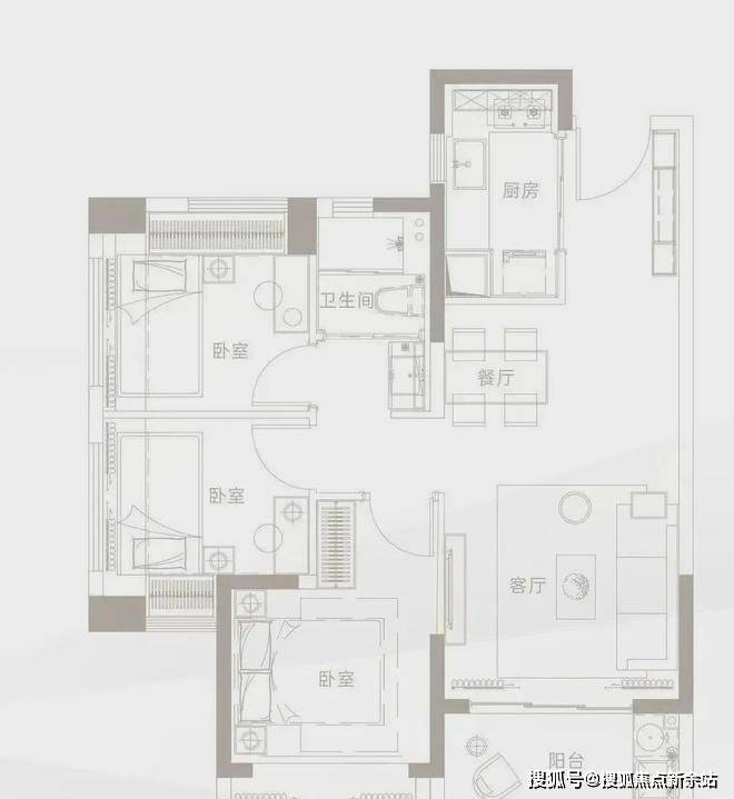 全屋通透三房三面采光,明厨明卫,L型厨房,多元功能合理配置三卧室均带飘窗,空间利用率高。