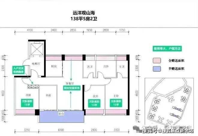 超高得房:95㎡实得约90㎡,110㎡实得约105㎡,比同面积段多10-15㎡;