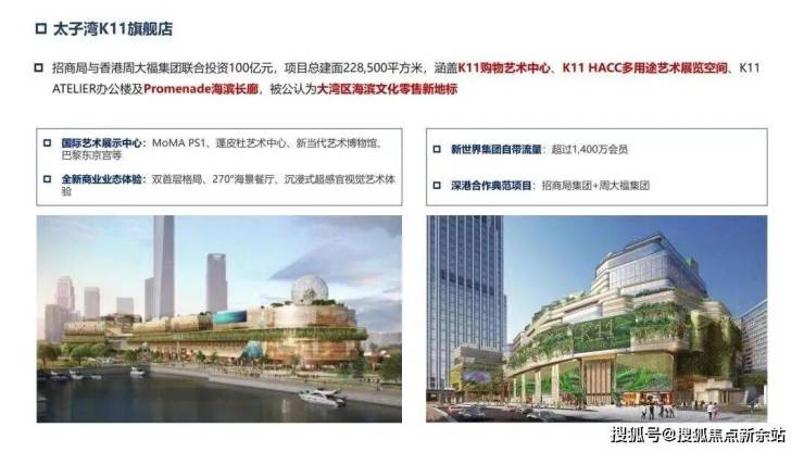 中国首个一线临海K11 ECOAST购物艺术中心亚洲旗舰店,涵盖K11购物艺术中心、K11 HACC多用途艺术展览空间、D-Park等商业,升级深圳商业的艺术品位与国际想象。