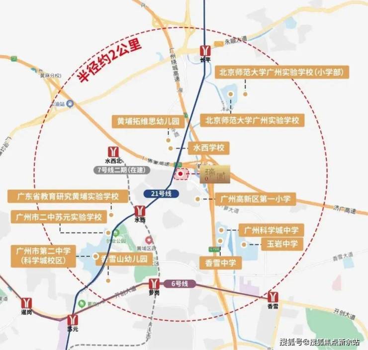 从本项目出发,约1.8公里即达重点中学——广州市二中苏元实验学校,约4公里可到北京师范大学广州实验学校;周边还有玉岩中学、科学城中学、玉山学校、水西学校、广州市科峻小学等学府环绕。