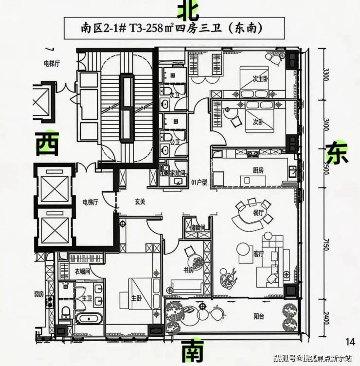 305㎡:延续北区爆款基因,优化玄关与次卧动线,东南向+超大阳台的组合依然无敌。