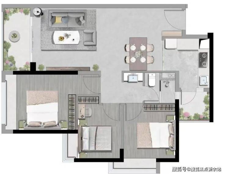 👉🏻 72㎡两房:优惠单价3.7-4.2万/㎡,优惠总价270-303万;