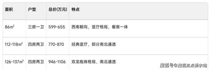 以下是龙岸君粼主推的平层户型及价格概况: