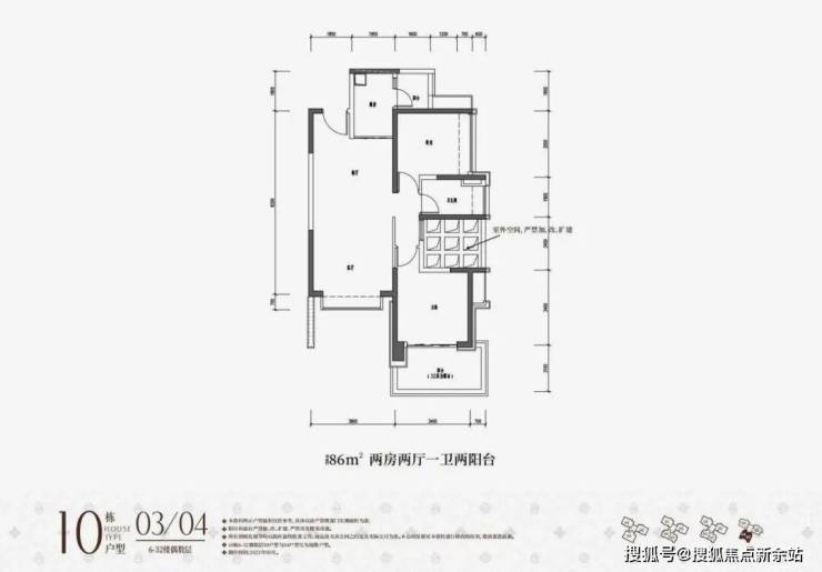 86平2房2卫(客厅开间3.8米)