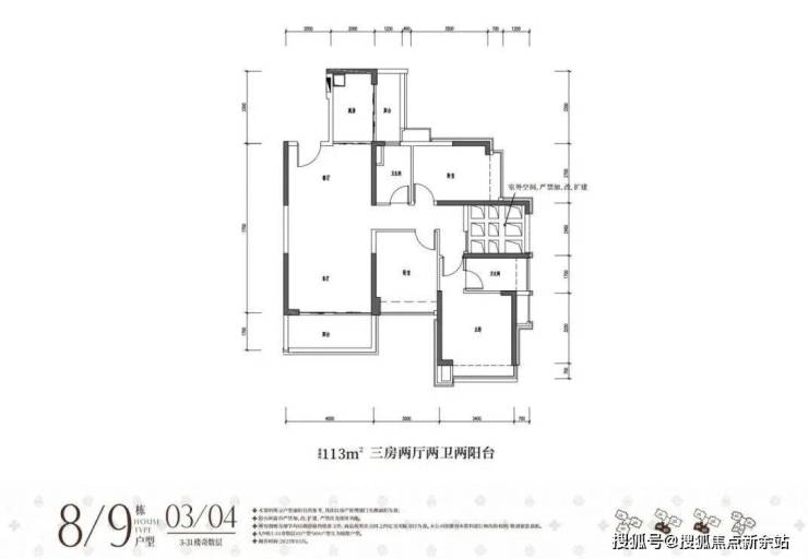 113平3房2卫(客厅开间4米)