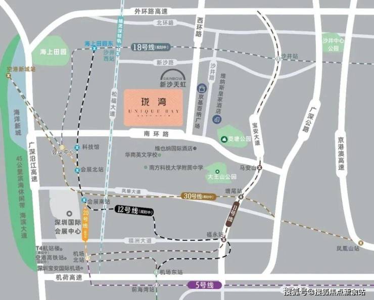 铁:穗莞深城际已在去年开通,南延段第一期至前海已开工,南延线二期规划到皇岗口岸,将与深圳地铁11、20号线接驳。目前区域内还有在建的深茂铁路、规划中的空港高铁站
