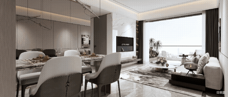 灵动通厅:客餐双厅舒展3.5米开阔面宽!朋友欢聚的笑语与窗外流动的风景在此自然交融,社交待客倍显从容大气,让“二人世界”也能轻松过渡到“三口之家”。