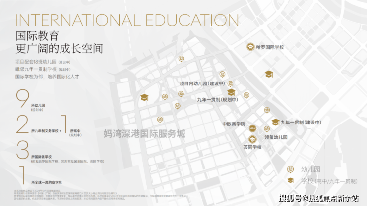 湾啟紫荆府的教育配置非常典型:楼下配建幼儿园(建设中),隔壁规划九年义务学校,周边还有前海创新妈湾学校等公办资源。
