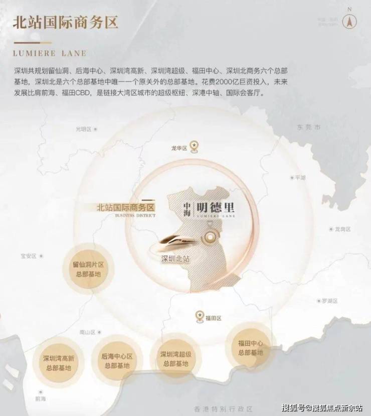 2)北站国际商务区,深圳六大总部基地之一,高投入打造国际化城市会客厅;项目距离深圳北站直线约2公里,所在民治街道是龙华目前发展的核心区域;