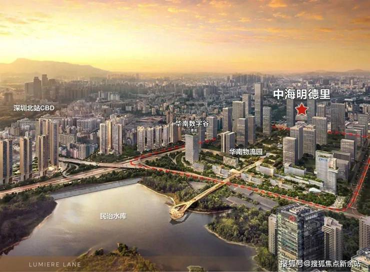 2)北站国际商务区,深圳六大总部基地之一,高投入打造国际化城市会客厅;项目距离深圳北站直线约2公里,所在民治街道是龙华目前发展的核心区域;明德里,于双区之中,在重点产业走廊之上,区域优势得天独