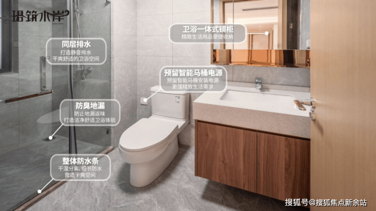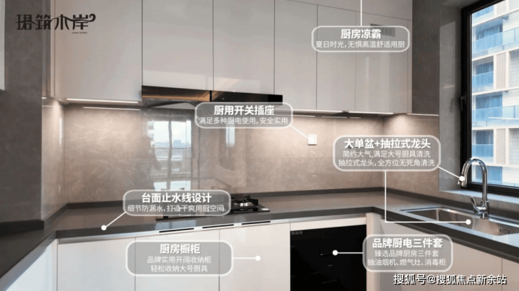 细节处理又极具人性化,层高拉高至约3.15米,打造同层静音排水,厨房台面设计止水线等,保障居家生活的安逸舒心。