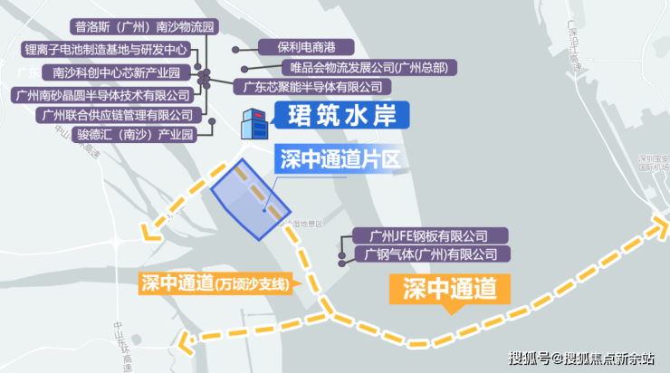 作为深中通道广州登陆首站,南沙万顷沙南部,真正的一桥直通,比深圳更近前海。