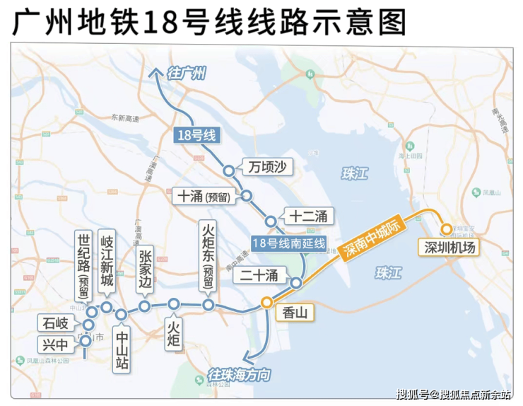 作为大湾区超级竖轴,地铁18号线在万顷沙南部设站,向北延伸至广州,向西串联起中山、珠海,向东与深南中城际衔接贯通深圳。