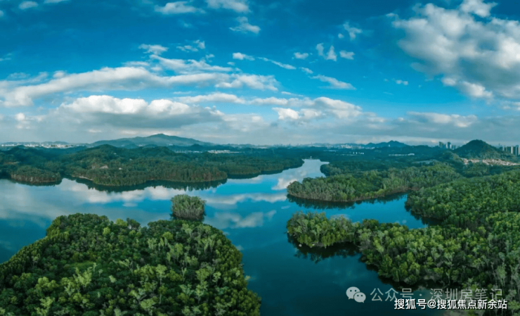 生态方面更是王炸。项目位于尖岗山片区,享有“六山两水四公园”超级生态资源,铁岗水库就在旁边,