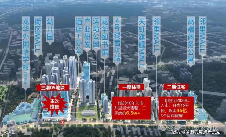龙华百万综合体大盘,4号线北延线茜坑站地铁口物业合正观澜汇三期地块住宅方面两个区域中能卖的住宅约1883户可售住宅,