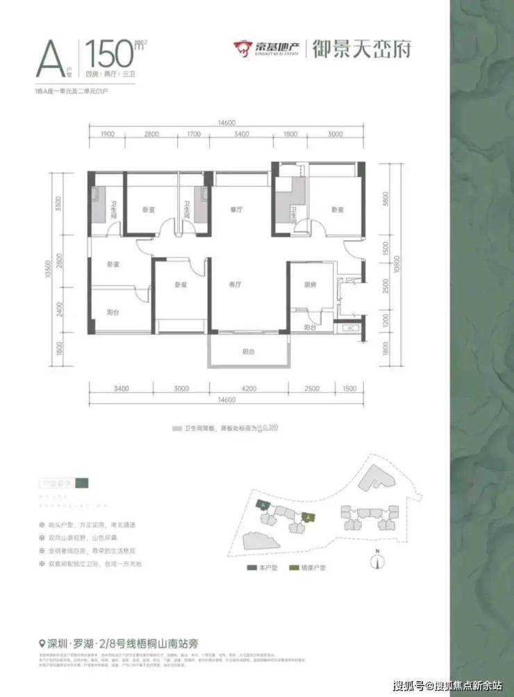 京基·御景天峦府,位于罗湖莲塘街道长岭中心路与罗沙路交汇处南侧,占据城市稀缺地块,坐拥得天独厚的自然景观与便捷的交通网络。项目北望梧桐山麓,山色葱茏,南瞰香港红花岭,视野开阔,尽享山海之间的壮丽景色。周边一寺两湖三公园环伺,为居住者提供了一个亲近自然的生活环境,快速通达东部华侨城、大小梅沙等旅游胜地,让生活与休闲无缝对接。