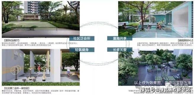 以现代简约的建筑语言,与海上田园、冰雪乐园链接观景动线,打造7大全周期活动景观配套+9大主题架空层,树立片区独特的现代生活美学复合型无界公园社区。