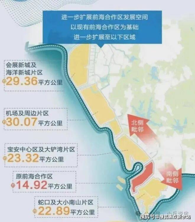 前海8倍扩容,会展新城正式纳入前海,前海发展能级显著提升,汇聚海港、空港、综合保税区、国际会展中心,创新资源要素和头部企业集聚,擎动湾区发展