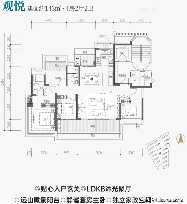 113-143㎡三房至四房、板楼设计、独立入户电梯间、超高得房率