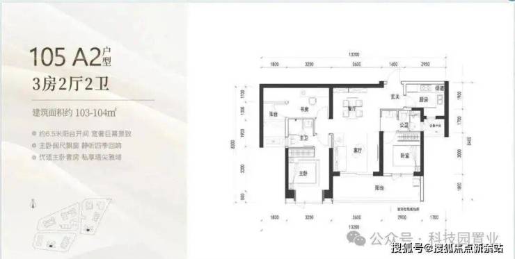 120㎡:客厅与卧室连通9.6㎡超大阳台,主卧带5.2㎡衣帽间,还有观景小阳台,主要为东南和西南朝向