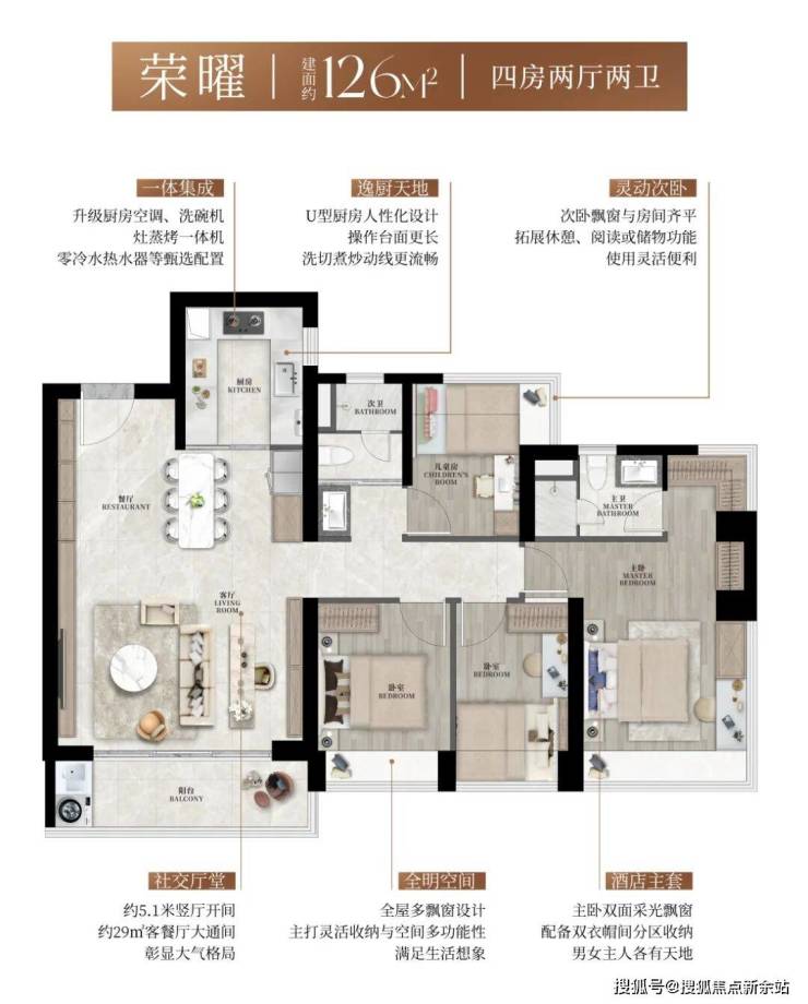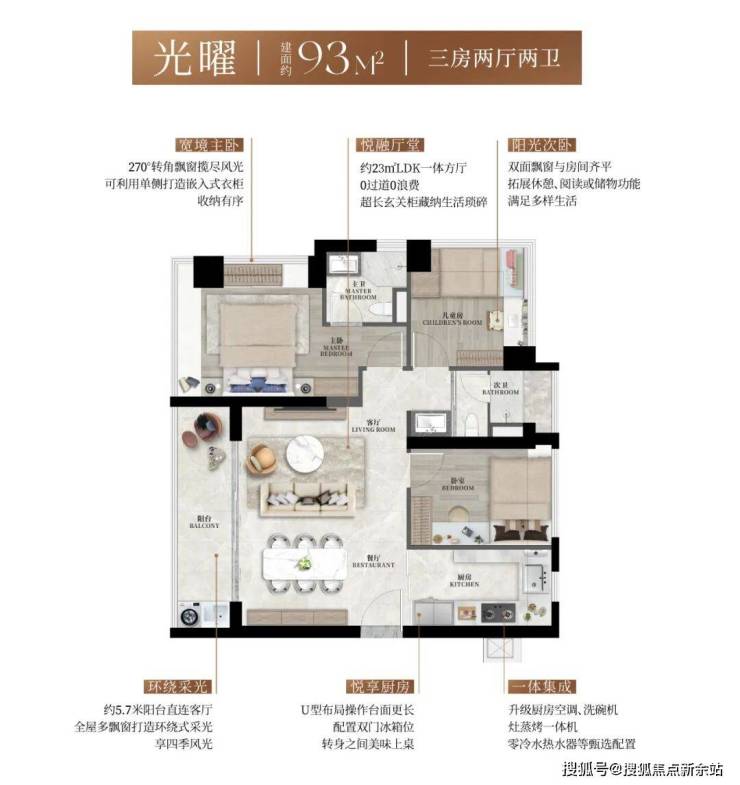 l颜值臻配:升级配置超大玄关柜、内嵌冰箱、灶蒸烤一体机、零冷水热水器、中央空调及厨房空调、轻松抽橱柜、双向流新风,以一体集成的精工美学,实现功能与颜值的并存。