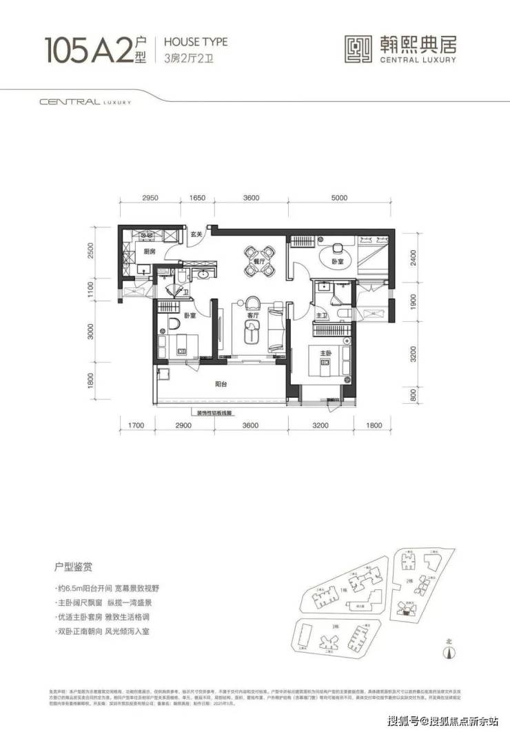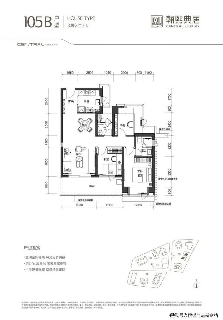 户型实用:新规后户型得房率约90%,105-140㎡的3-4房设计,部分户型阳台开间达6.5米,空间利用率高,采光通风佳。