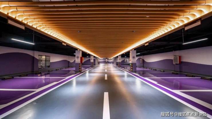 再比如,业主最容易忽略的车库,也能看出臻颐府一系列精心打磨的细节,天花板采用木纹铝板格栅吊顶,更显轻盈、透气。