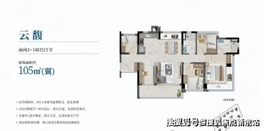 108.1㎡四房户型:针对改善型家庭设计,该户型空间宽敞,布局合理,全南向采光搭配高拓展空间,可轻松满足三代同堂居住需求。客厅面宽开阔,连接超大南向阳台,视野极佳;四个房间空间充足,主卧配备衣帽间与独立卫生间,提升居住质感;其中一个房间可改造为书房或茶室,满足家庭多元化需求,兼顾居住与休闲功能。