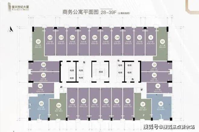 公寓8梯28户,办公6梯15户,商业4梯34户