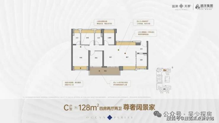 C户型-约128㎡4房2厅2卫:户型分布在5单元,横厅南北通透格局。