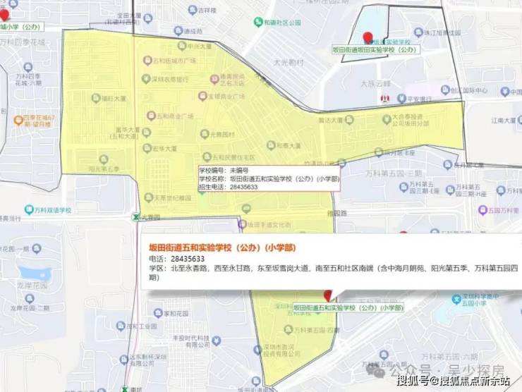 项目自带1所幼儿园,北侧地块还规划有1所18班制幼儿园;根据龙岗区教育局的学区划分,小学学区为深圳科学高中五和实验学校小学部,距离约700米;初中学区包括深圳科学高中五和实验学校初中部、扬美实验学校初中部、云端学校初中部、深圳实验学校坂田校区初中部等。
