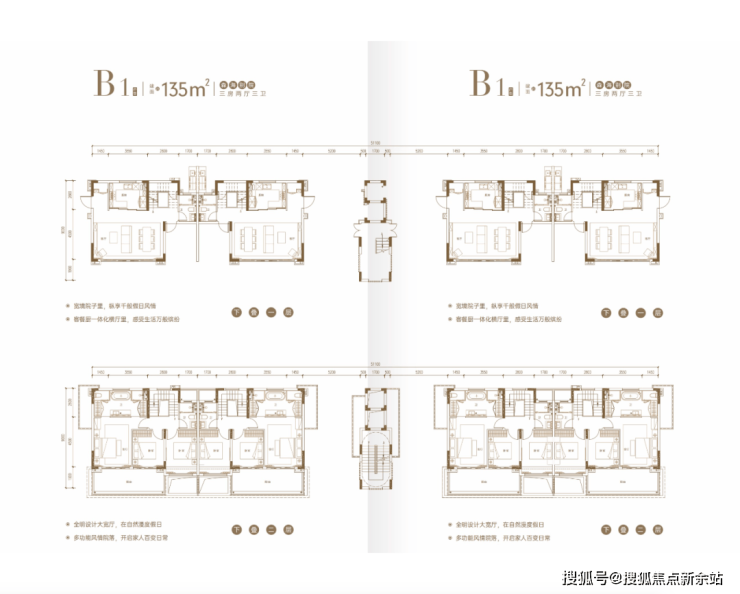 约133-137㎡森海别院A约185㎡私家院落,院子>房子超配体验B双面宽空中露台,于家中坐拥星辰大海C独立玄关入户,度假亦彰显生活仪式感D全明阔绰三居室,开启一家人美好旅居