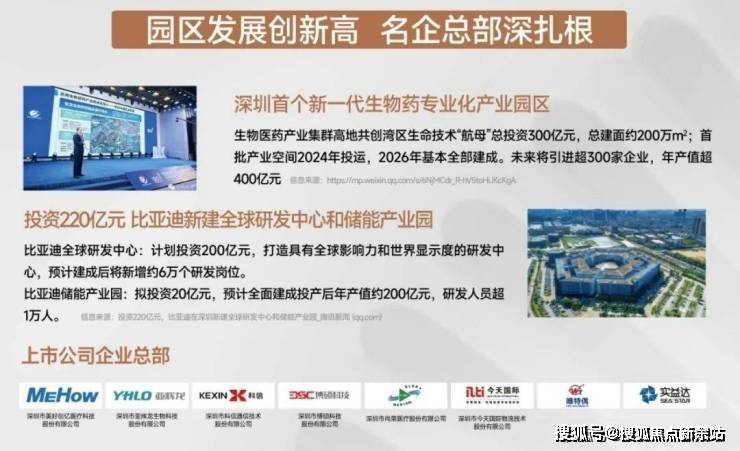 片区园区发展迅猛,深圳首个新一代生物药专业化产业园区,生物药创新发展先导区总投资300亿元,总建面约200万㎡;
